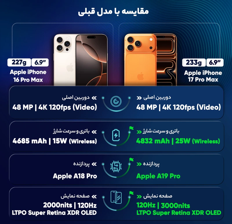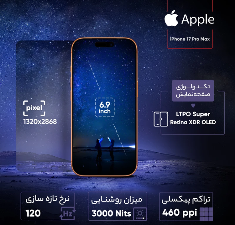 گوشی موبایل اپل مدل iPhone 17 Pro Max ZAA تک سیم کارت + eSim ظرفیت 256 گیگابایت و رم 12 گیگابایت - نات اکتیو-رجیستر شده