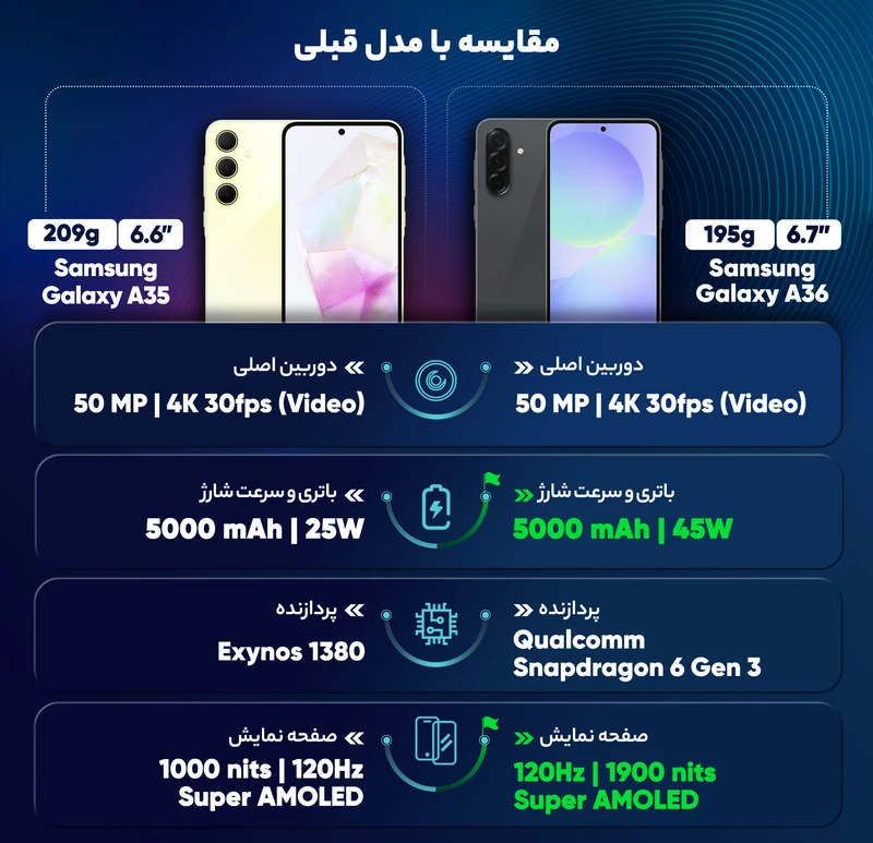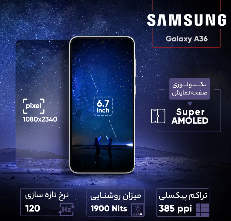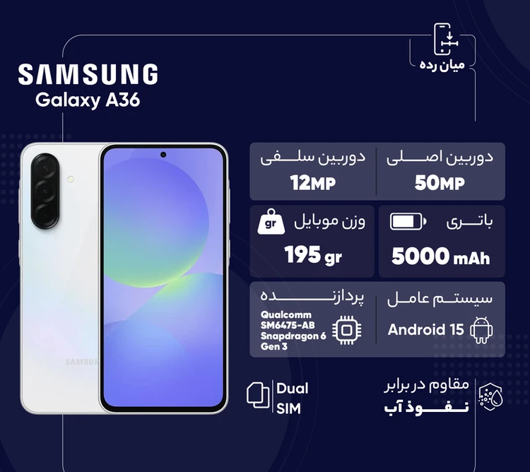 گوشی موبایل سامسونگ مدل Galaxy A36 دوسیم کارت ظرفیت 256 گیگابایت رم 8 گیگابایت - ویتنام