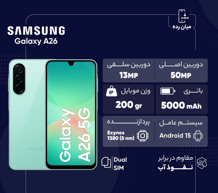 گوشی موبایل سامسونگ مدل Galaxy A26 دوسیم کارت ظرفیت 128 گیگابایت رم 6 گیگابایت - ویتنام